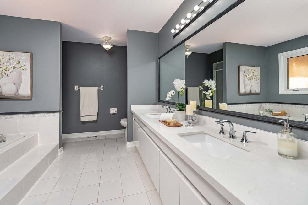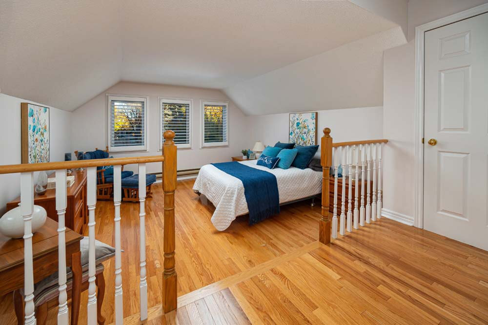 Relax and unwind in the huge primary bedroom retreat, complete with a spa-like ensuite & His & Hers closets. An additional (2nd primary) bedroom features its own private ensuite, 2 closets and a unique sunken room design, adding an extra touch of character.