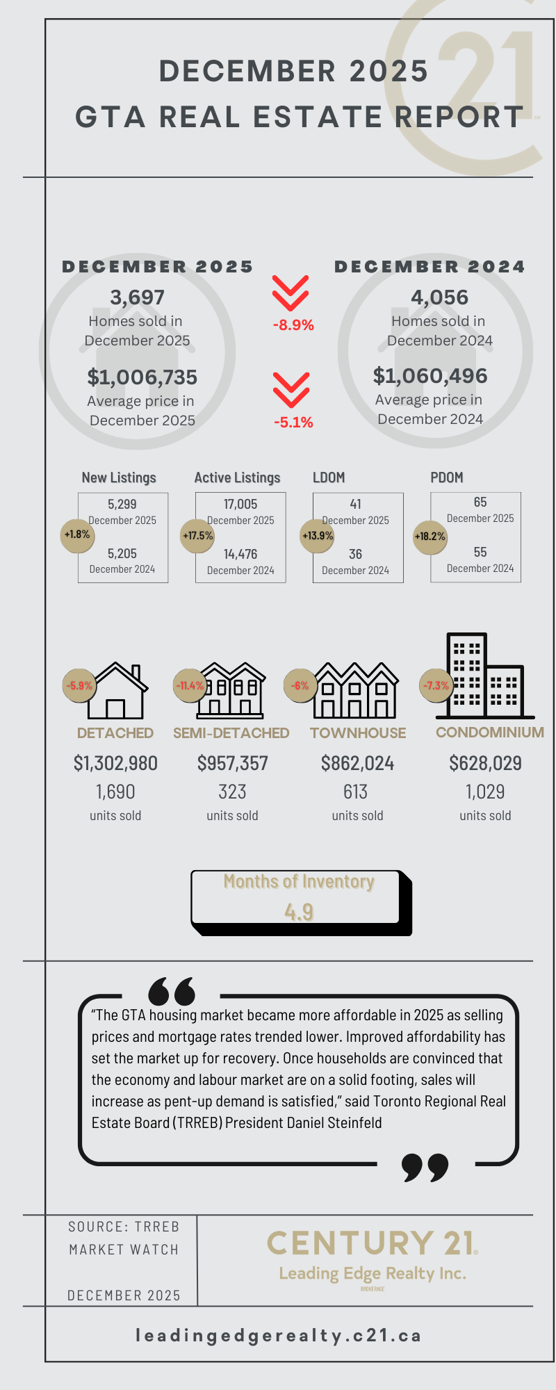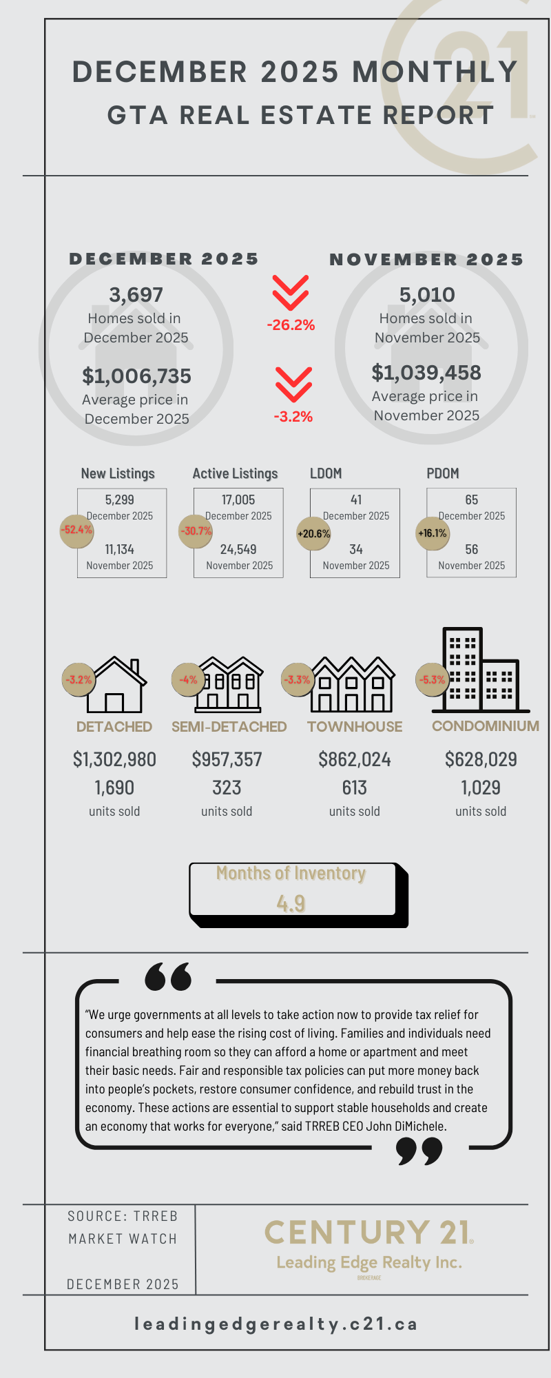 TRREB Market Report Highlights - December 2025